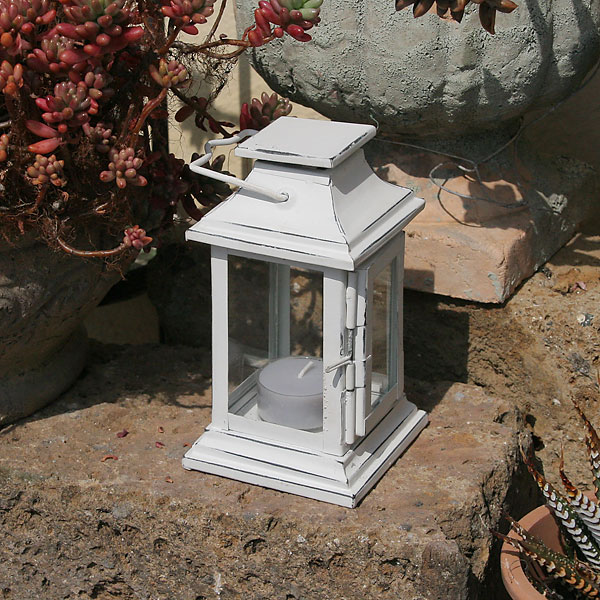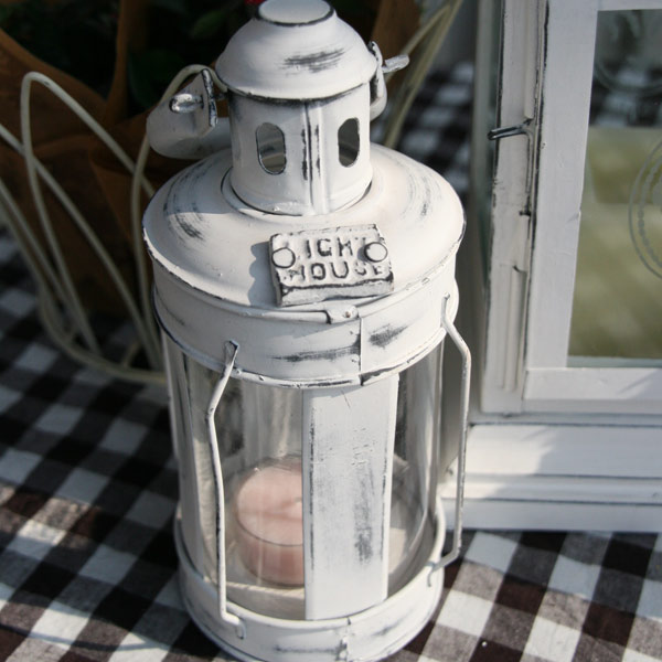 ◆すぐ使えます!◆お試し用キャンドル1個付き!◆ガーデニング、アウトドアリビングのお供に!ホワイトペイントキャンドルランタン-ハウス角大